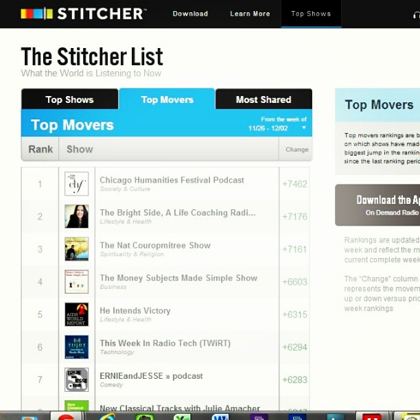 ERNIEandJESSE podcast ranked #7 on Stitcher radio top movers list